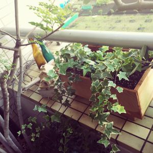 結局、植木鉢買いに行けず。。 奮起して〜 ずっと植え替え待ちだったアイビーを素麺の木箱に植えてみました。笑 ペイントすらしなかったなぁf^_^;) さぁーどうなるかな。 通気性は悪いかなぁ〜 木箱にカビ生えたりして💦笑