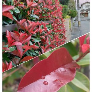 お疲れ様です😌💓 🏷️0が付く日は雨粒の日 上は今日今さっき撮った、ご近所のオオカナメモチ、レッドロビンかな? 下は、私の職場の駐車場で雨の日に取り置きしてた雨粒。 この頃は快晴、一雨欲しいです😅