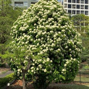 🌲オオカナメモチ🌲 木全体的に白い花が沢山咲いてます 大木戸門の入り口ゲート奥にあります