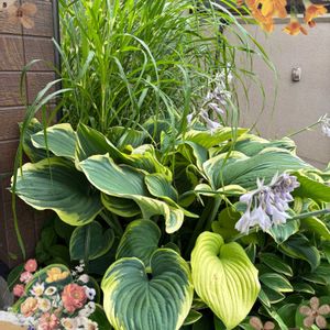 🏷素敵な水曜日 ①玄関脇の小さな花壇を見て「瑞々しくて素敵ですね🌿」と、母のお迎えに来たスタッフの方。この大きなギボウシさんと、縞ススキ、私もお気に入り。 ②①のギボウシの手前にあるシモツケの木をかなり剪定した筈なんだけど、また大きくなってしまい、バランス悪いの。しかも、白いノコギリソウいつの間にか、出て来て元気良すぎです。 ③玄関ドアにニゲラと、イワミツバを刈り取ったのをスワッグに。
