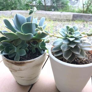 メルカリでお嫁に来たお子達( ᵕᴗᵕ ) まさかりんごちゃんが居ると 思わなくて(·∀·)ニヤニヤ 今日は多肉日和 いつも親切にありがとうございます 大切に育てます^^*