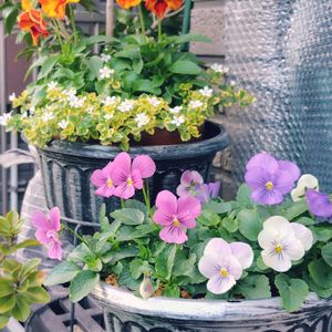 誘惑に負けてしまいました‥笑 100円だったし、とても元気なお花で! どちらも3段階に色変わりするそうなので、 楽しみです♫ ビオラプラスというパンジーとビオラが融合した新しい品種だそうです。 丈夫で花数の多いビオラに、パンジーの華やかさと彩の多さ、ちょっぴり大きめの花をプラスしたそうです。 ピンク系の「きまぐれロージー」パープルイエロー系の「天使の誘惑」です。