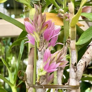 🍀スノーフレーク🍀 デンドロビウムの交配種 静養してたレスキュー苗です🪴 梅の木に着生させました😙