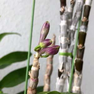 💜デンドロビウム クニコ"ジュン"💜 蕾が色づきました✨ 今回は9房、小規模な開花になりそうです。 🏷️魅惑のデンドロビウム
