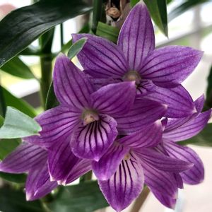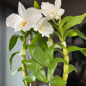 開花中の洋ラン色々 左側 上段⬆️ デンドロビウム ビクトリア レギネ 下段⬇️ クニコ“ジュン”Den.(goldschmidtianum(種子親)×victoria-reginae(花粉親))種子親(母)のゴールドシュミッディアナムの花は濃いめのピンクでとても花付きの良い品種。蕊柱の黄色がアクセントで、レギネをどピンクにした感じ。クニコ“ジュン”は両親の良いとこ取りでで生まれた品種かな。(もうちょい花の色が濃くてもいいかなと思うけど…贅沢は言えないね🙊) 右側➡️ 上から ドリテノプシス ケネスシューベルト ファレノプシス メモリア パルレティク “ペロリック” カトレア チェリーソング アルバ いじけていた蕾(6/26投稿)がここまで綺麗になったよ ファレノプシス テトラスピス アルバ “グリーン” ニンゲンにはダルい季節だけれど蘭は生き生きしているように見える❣️