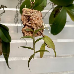 🍀デンドロビウム ブライアネンセ🍀 水遣りしてたらバックバルブがポロって落ちたので エリアの鉢に置いといたら出てきた😄‼︎ 根が出そうだからコルクにつけました❣️ Dendrobium braianense