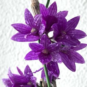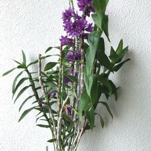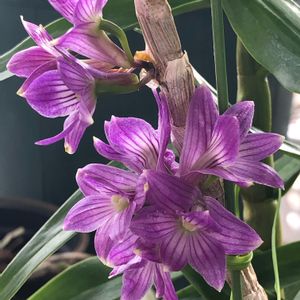 💜デンドロビウム・クニコ"ジュン"💜 ポツポツ咲いてくれます✨ 台風🌀からベランダ内側へ避難中。 🏷️魅惑のデンドロビウム