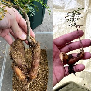 2020年実生株 1年前との比較、塊根が大きく増えてました。順調です。鉢がパンパンだったので一回り大きい鉢に植え替えしました。
