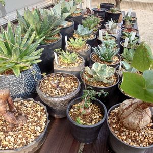はじめてのグランカクタス🌵へ 日本最大級のサボテン、多肉専門店💡 一日あっても回りきれないくらいたくさんの植物があります! が、オークション開催中はコーデックス・アガベのハウスは入れません🙅♂ お昼時間も入れないので、開催日は実質午前中しか入れないっぽいです😵💫 右側picのイカツいBBちゃん達は、この前原澤園芸さんでフレになった方のお店です♪ お煎餅屋さんなのに植物がいっぱい置いてある💦長居しちゃってごめんなさい😆🙌✨