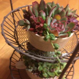 おはようございます☀ アングルが下手ですみません🐔 10年くらい前に園芸教室で使った 壁掛け…ハンギング( ? )で 合ってます? 腐食防止に色を塗って👷♀️ 水苔と用土を入れ直して植え替えてみました🌵 あの頃は こ~んな ちっちゃいバラ🌹みたいな多肉ちゃんは 見つけられなくて 火祭りと朧月と虹の玉くらいしか覚えてないけど 🌵 教室に来た方達と話しながら楽しかったですね~🏵 また 行きたいですね💕 でも鉢が増えちゃうんだよね~🤗