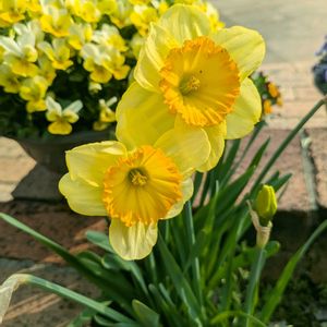 小さなお庭シリーズ🌿.∘ 冬の間ずっと日陰のお庭でやっと色々と咲いてきましたෆ˚* ムスカリとスイセン(◍︎´꒳`◍︎) 名前忘れてしまいましたが、可愛いです( * ֦ơωơ֦)