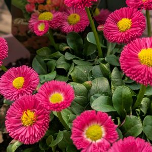 こんにちは😊 ベランダが賑やかです(*´꒳`*) デージー、赤いお花のいちご、フィオリーナ、プリムラオブコニカ プリカント、ドラキュラෆ˚* そろそろパンビオたちも徒長し始めてきたので、夏苗に入れ替えかなぁ🌼.*