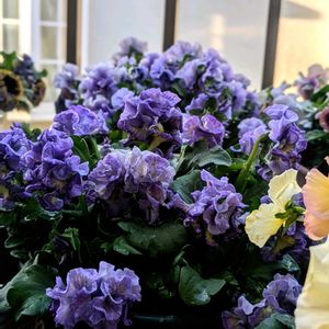 もりもりのクレールドゥリュンヌさんと職場でもらったラビットビオラ🐇 パンビオたちも暖かさで大きくなってしました(*´꒳`*)