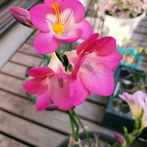 おはようございます😊 今日のお花フリージアෆ˚* 大好きなお花なんですが、忙しさで去年の秋は植えることが出来ず…過去picになります(՞ . .՞)" フリージアの香りもいい香りですよねᥫᩣ ̖́- 王道の黄色いフリージアもいたはずなのにフォルダのどこかに埋もれているのかな(•ᴗ•; )