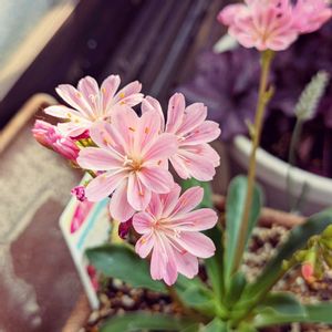 植え付け後のレウィシアෆ˚* 山野草は育てたことがないので、山野草の土で植え付けました(*´꒳`*) 可愛いなぁᡣ𐭩 元気よく育ってね✧︎*。