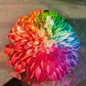 お花屋さんで見つけたレインボー色の菊ですෆ˚* 姪っ子がママにプレゼントする!と言うので1輪買いました(*´꒳`*) 私の影響なのか、まだ小さいのにお花が大好きな子ですᡣ𐭩