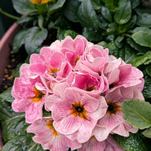 おはようございます(*´꒳`*) 今日のpicはベランダのバラ咲きジュリアンたちですෆ˚* みんな美味しそうな名前ꉂ 🤭 プリムラ系は葉っぱが大きくて野菜みたいといつも思ってます笑 植え付けの時によく葉っぱ痛めちゃう…( ˊᵕˋ ;)