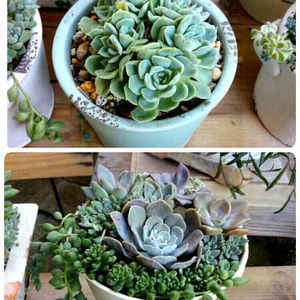 今日連れて帰った子達。 左端のサボテンと、右端の多肉寄せ植えの名前が全く分かりません( ˘•ω•˘ ).。oஇ 1つでも良いので誰か教えて下さいm(_ _)m サボテンと寄せ植えは後でアップで写したやつも載せます📷 宜しくお願いします🙇⤵️
