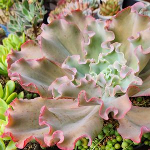 ❤️数ヶ月咲いています❤️ この子は、きゃべつ大のサイズ うちで1、2を争う大きさ😉☝️ 赤いお花は、意外でした~✨ ベンケイソウ科 エケベリア属 高砂の翁(タカサゴノオキナ)