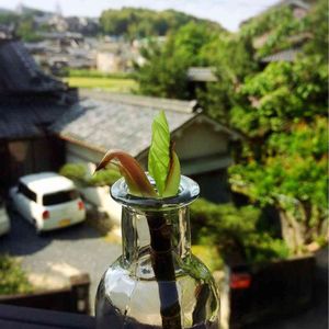 サンキャッチャー効果第2弾✴ 光のプリズム🌈おもしろバージョン😉 今朝は椅子の背もたれの籐の編み目を通して、ダイニングテーブルの上に光のプリズムがシマシマ模様になってました❗ 急いでヘデラを添えてパチリ😄 この一輪挿しは、10年ほど前高校生だった息子の沖縄修学旅行のおみやげ。私の宝物❤