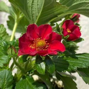 赤花の四季成りイチゴ ルビーアン🍓 お花が咲きました(*´艸`) 🏷真っ赤な火曜日 参加させてくださいʕ•ﻌ•ʔฅ´- ♥️