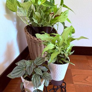 増やすまい😑と、見るだけ👀で我慢して参りましたが、、、 昨日は久しぶりのお出掛け〜🚗 イオンモールでワクワク💓笑笑 店舗内の美しい照明💡にもやられて〜 その美しさにズキュン😍 ②④pic:シンゴニウム・シルバーフォックス✨ と、ラベルがあります🏷️ ③⑤pic:ペペロミア・ナポリナイツ✨ 悩んでお店から2度離れて、3度足を運んで購入〜😂 ④⑤picは、店舗内で📸写真を撮ったのですが、照明💡のおかげで、とても美しく撮れました🤗 今更ですが、自然光や、屋内の照明💡で随分と雰囲気も色味も変わるものなんですねー😳 ビニールポットに入っているので、植替えしてあげないとな〜🤔 とりあえず、家にある白い鉢へ入れてみましたが、サイズはピッタリ! でも、抜いてみないと分からないので、ひと回り大きな鉢を用意しないとかな?という感じです😊 お迎えして良かった🧡