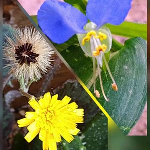 庭の片隅に静かに咲いてる雑草 ツユクサ ウズラバタンポポ