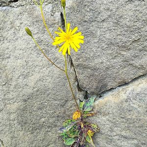 石垣の隙間から根性タンポポ💪 💚ウズラバタンポポ💚💙💜❤️ (鶉葉たんぽぽ) 🍃葉っぱがウズラ模様🍃