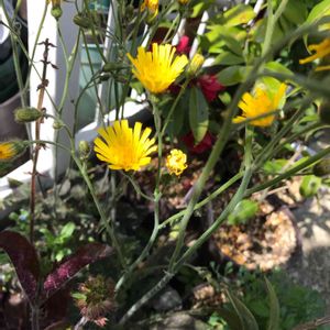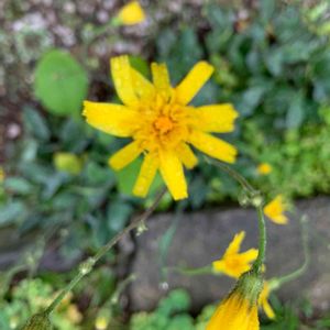 ウズラバタンポポ(鶉葉蒲公英) 葉がうずらの卵のまだら模様に似ているところからつけられた名前です。正式には「 ヒエラシム・マキュラタム」と言います。 茎がヒョロリと長いので葉っぱが撮せませんでした。 残念…