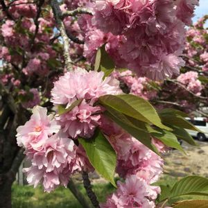 八重桜も満開できれいだった。 宮城県白石市。 大河原公園。