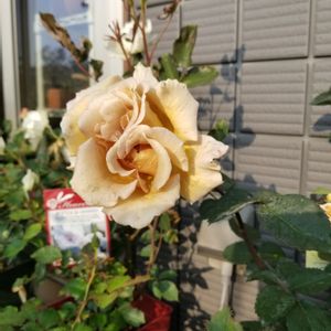 我が家のバラ、 エバンタイユドールです。 柔らかなオレンジと、 ヒラヒラのはなびらが素敵です❤️ 七分咲きも満開も、それぞれ魅力的❣️