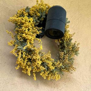 今年のミモザリースも沢山楽しんで そろそろお片付け でも ちょっとその前に 外壁のライトに掛けて暫く楽しむ事にしました 𓂃✩.*˚ これはこれで シックになってきた色を楽しめていいかも🦆 です💡 壁に釘を打ちたいところですが…. ちょっと度胸が… とりあえず今年はこんなとこで 𓂃 ✿𓈒𓏸 𓂃