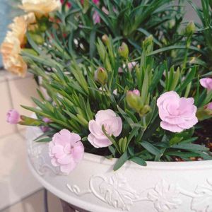ダイアンサス 3姉妹を最近お迎えしました🌸 右上のピンクキッスが他の2つより2週間程早くお迎えしたので、少し大きめです😊 満開目指して頑張るぞ❗