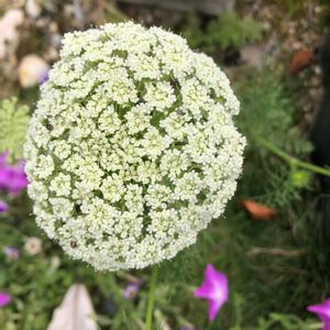 こんにちは😃 ニンジン❣️さん、こぼれ種から 生え、いつの間にか 直径10cm球 花が咲きました 😊