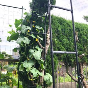 こんにちは😃 アーチの風景❣️ なんちゃって キュウリ❣️ どうせならてっぺんまで行って 手前まで降りるぐらい生き延びて 😊