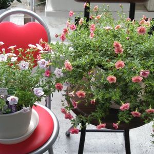 右側カリブラコア・ダブルホットローズ😃 左側カリブラコア・ダブルラベンダー😃 同じ場所で、同じ値段で、同じ日に買って来たのに、この成長の違いは何だろう?😅 もうそろそろ…花も終わりに近づいてるのかな?