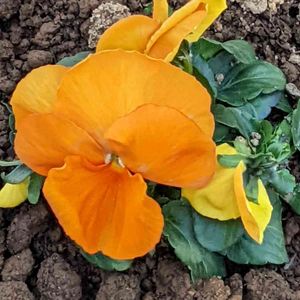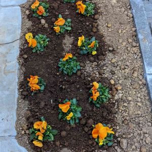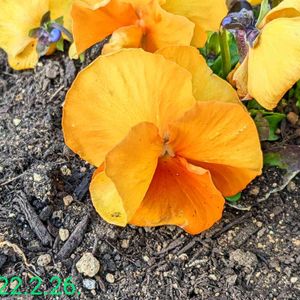 橙色🔶のパンジー 歩道沿いの新しい花壇 2022年3月10日撮影