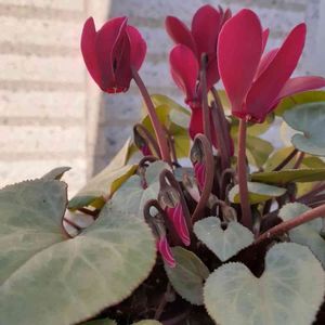 夏越ししてくれたシクラメン。 春も夏も秋も1、2輪咲いていて 冬になって蕾がたくさんつきました。 でも、なかなか上がらずヤキモキしてました。 この数日で一気に蕾がすっと伸びて 開き始めました。 シルバーリーフも素敵な美人さん❤️