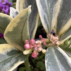 スキミア マジックマーロー 1〜3枚目 昨日 迷って迷って何度も行ったり来たりしてお迎えしたスキミア マジックマーロー お店のスタッフも高いから迷いますよね〜って😅 蕾がピンク🩷だし 斑入りだし 何より成長が遅いのが嬉しい(変ですかね) 4枚目 我が家の何年も住んでるスキミアちゃん