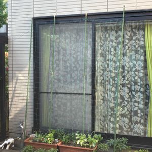 中庭の朝顔ネットを取り付けました 今年は台風が来ませんように
