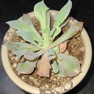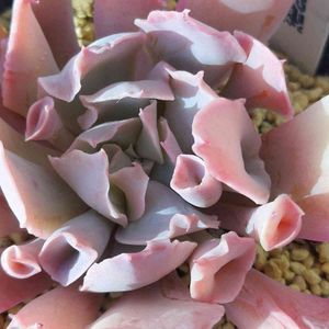 エケベリア属 「トランペットピンキー」 お正月からうちの子になりました✨ トランペットピンキーちゃんです。 📯状の葉っぱが面白いですね。 普通の形の葉っぱもあるんですよね。 変態していくのですかね。 ネットの写真だと、ブルー系の色をしていました。 過保護で、家の中に入れているから色が出てこないのでしょうかね? 多肉植物の分からない事が多いです。😅
