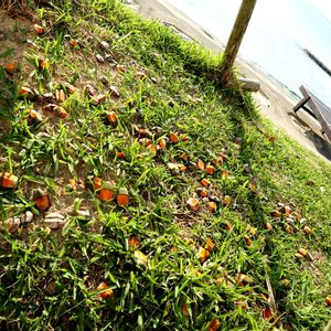 阿檀(アダン)タコノキ科 前のポストの木。 実がポロポロッと落ちて... やがて芽が出ます。 沖縄の海岸などでは、よく見かける光景。