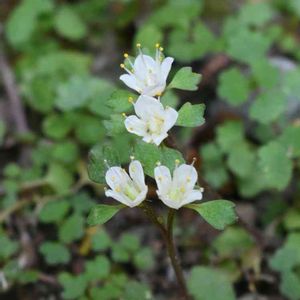 いくつかのお目当てのひとつに''ハナネコノメ''がある。 白と赤のコントラストがよく目立つ''ハナネコノメ''を探していたけど、赤くなーい💧 葉も似てるように見えるけど、違う種類かな? ※アーヨンさんにハナネコノメの花期の終わりと教えていだきました😊 2019.3.22 東京都高尾山にて📷