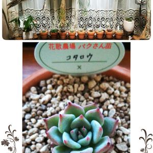 おはよーございます✨ 曇 可愛い✨お花屋さんの イベント 店主との ジャンケン大会 一番に勝った♪ 楽しい思い出 その時のエケベリア♡ 親子だっんダ☺ 大(親)→出窓 小(子)→外の軒下
