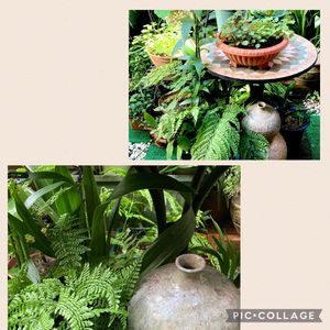 ガーデンテーブル下の シダもオモト🌿 青々と元気です💓