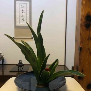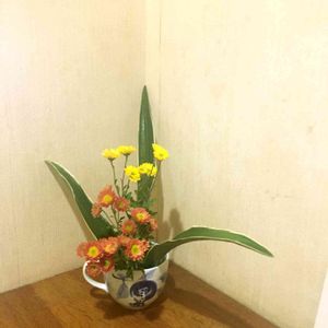 庭の花をいれてみる。 同名の大阪の圭さんの「万年青を入れる...」をヒントに🤗 今まで使ったことのなかったうちの庭の万年青を添えて菊と入れて見ました。 今年最後のお客様を迎えます。 この菊上手に挿木したいなぁ🌱🌱