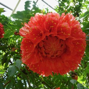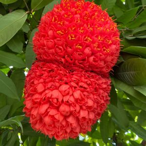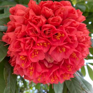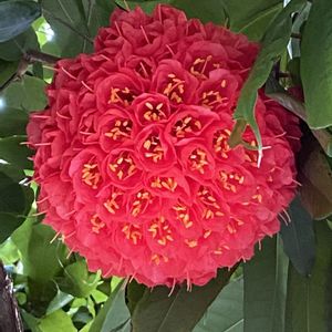 ずっと待ってた公園の「ベネズエラのバラ」今年も咲いた❣️赤いボールみたいな花🌺🌺🌺