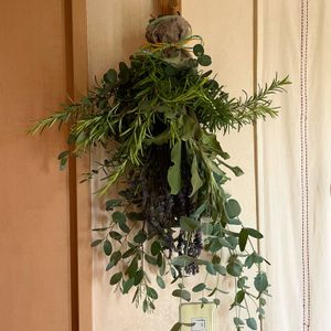 ラベンダー、ローズマリー、ユーカリでリースにしました。