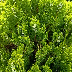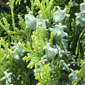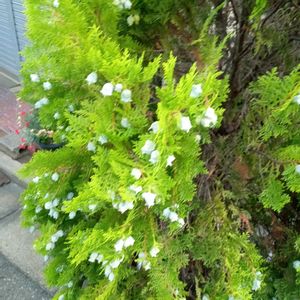 おはようございます😊 いつもありがとうございます♡ 買い物先にて コノテガシワに花? 実? たくさん付いていましたฅ(=´ㅅ`=)ฅ 2025.5.5 📷️