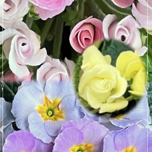 🌺プリムラ・ジュリアンと🌸ポリアンサ(サクラソウ科) 寄植えして一月たち、華やかになってきました💗 ホントの春が来るまで 楽しませて🎶
